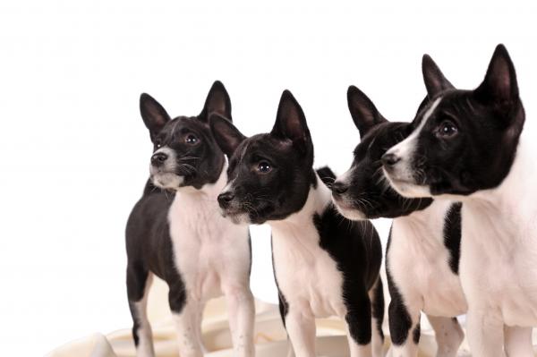 Пометы басенджи немногочисленны, в среднем рождается 4-5 щенков. | |